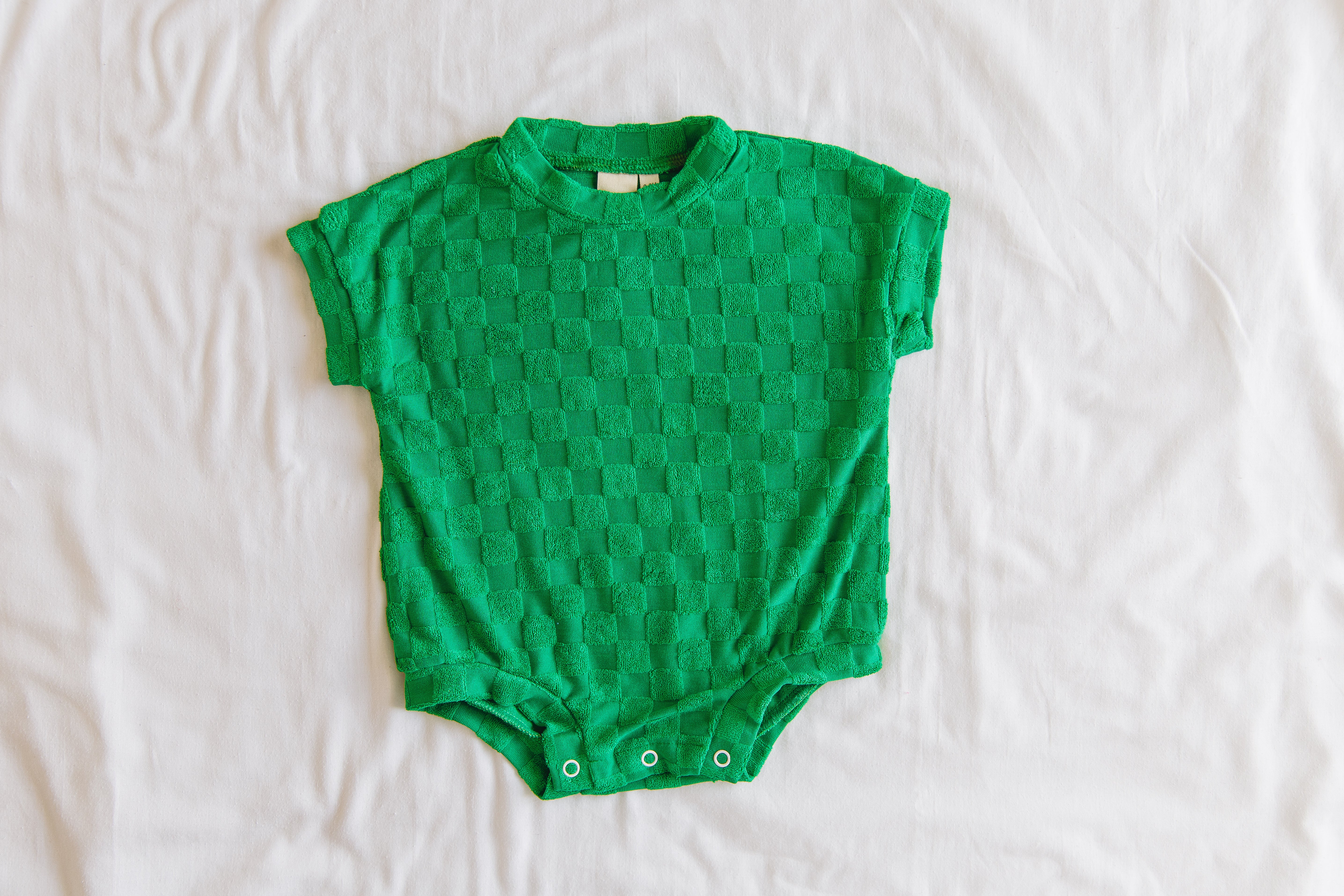 Terry Romper - Pine Chequerboard