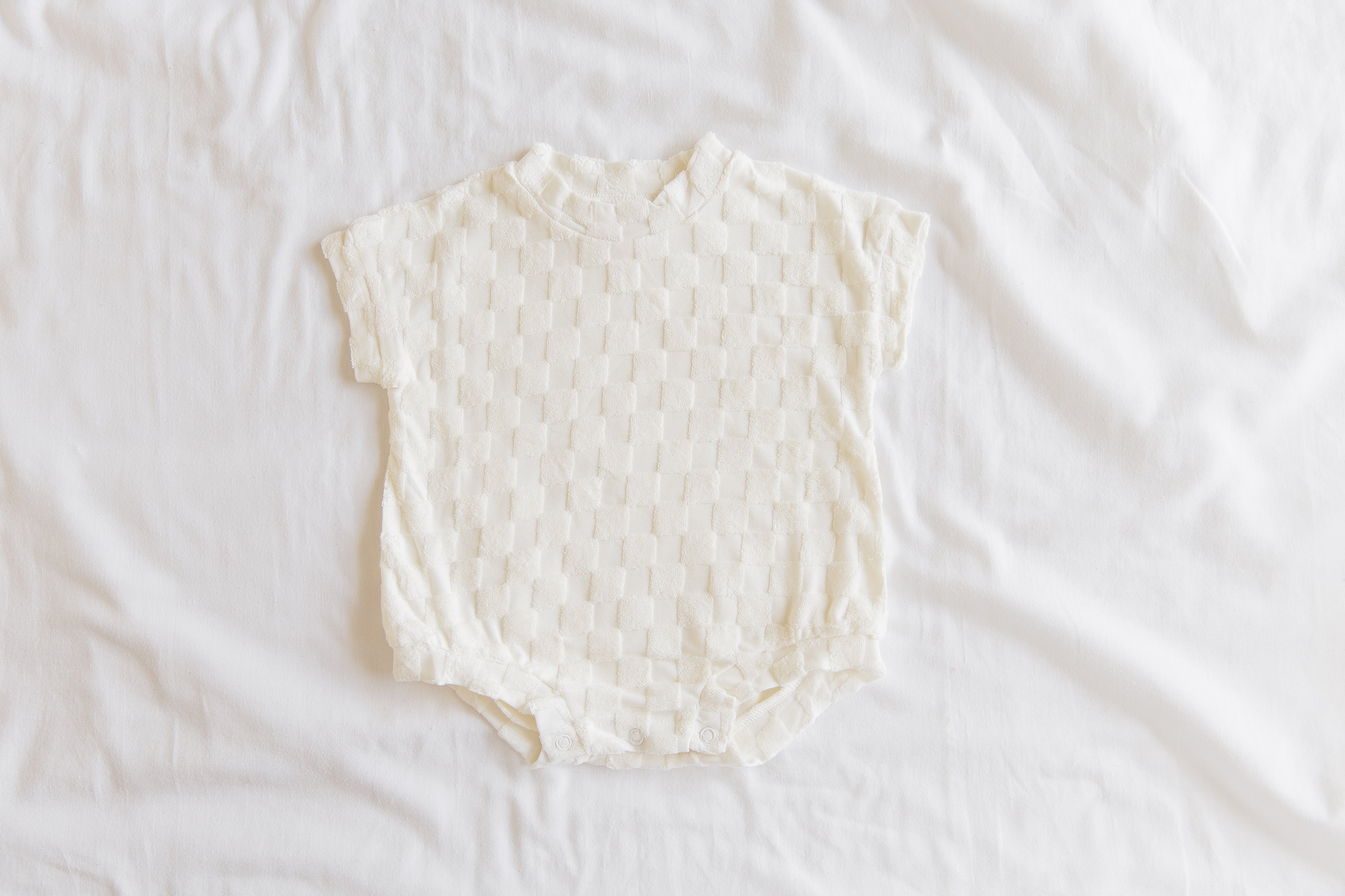 Terry Romper - Cream Chequerboard